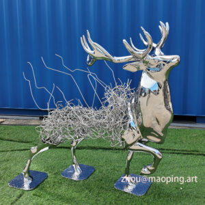 Luxury indoor hotel decorative art mirror polished stainless steel deer sculpture