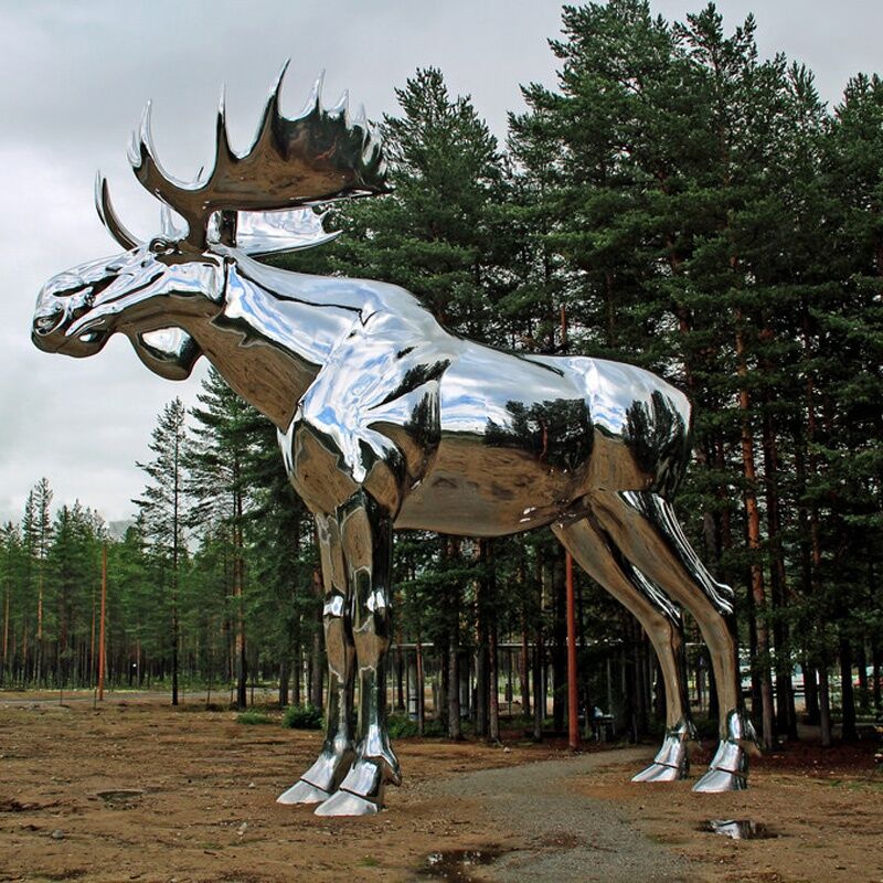 This 10m Stainless Steel Mirror Polished Garden Large Metal Moose Sculpture is both a work of art (Artist: Linda Bakke) and a road safety measurement. It is placed by a rather dull road stretch, to wake up dozy drivers.The surface of this metal moose sculpture is high mirror polished, which makes it modern and artistic.  It is very suitable for public or garden decoration.