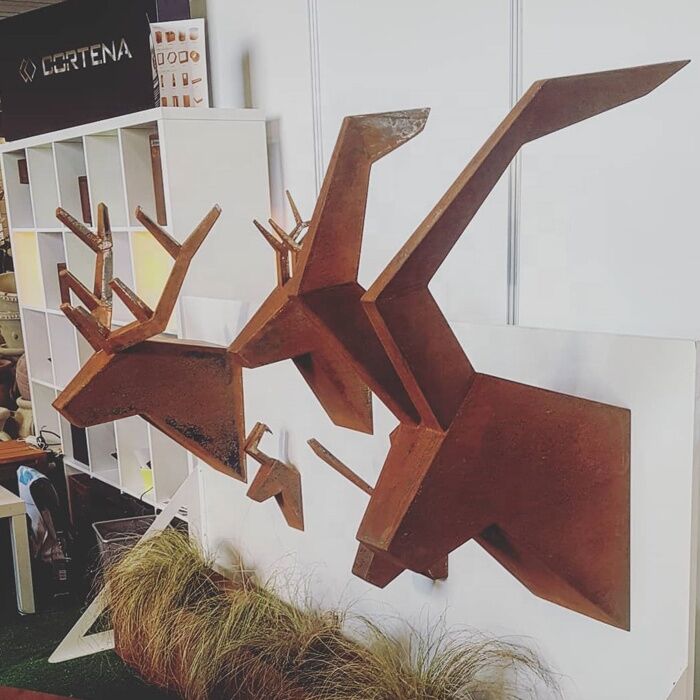 This is corten steel deer head sculpture.This deer head sculpture can be mounted on wall outdoor in your garden,. It can be customized into various scale.