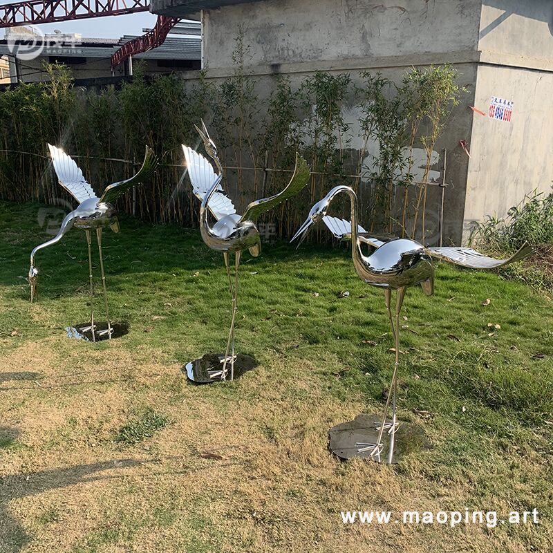 custom outdoor park pool mirror polished stainless steel abstract art sculpture Crane metal statue