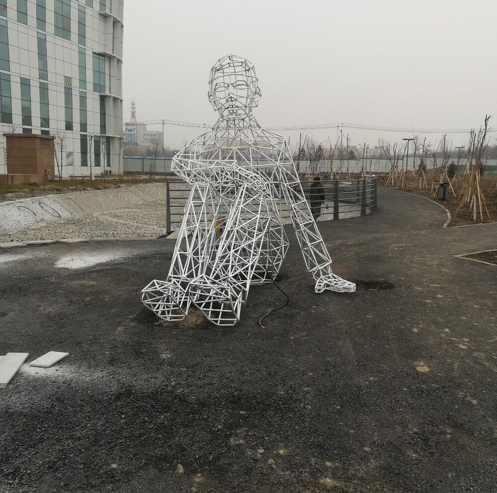 Eye-catching line shaped steel tube humanoid statue
