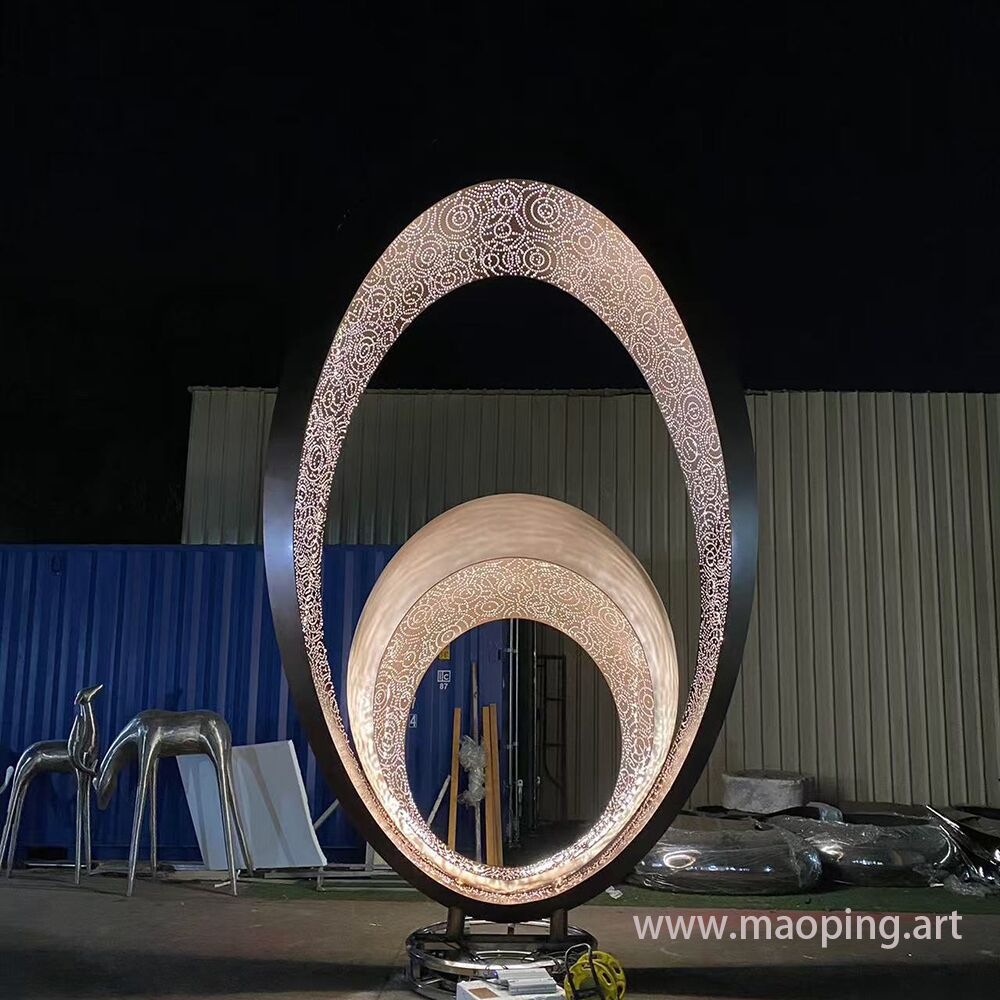 Large outdoor park square urban decoration sculpture metal LED stainless steel ring sculpture
