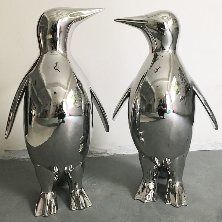 Large Stainless steel penguins in public art
