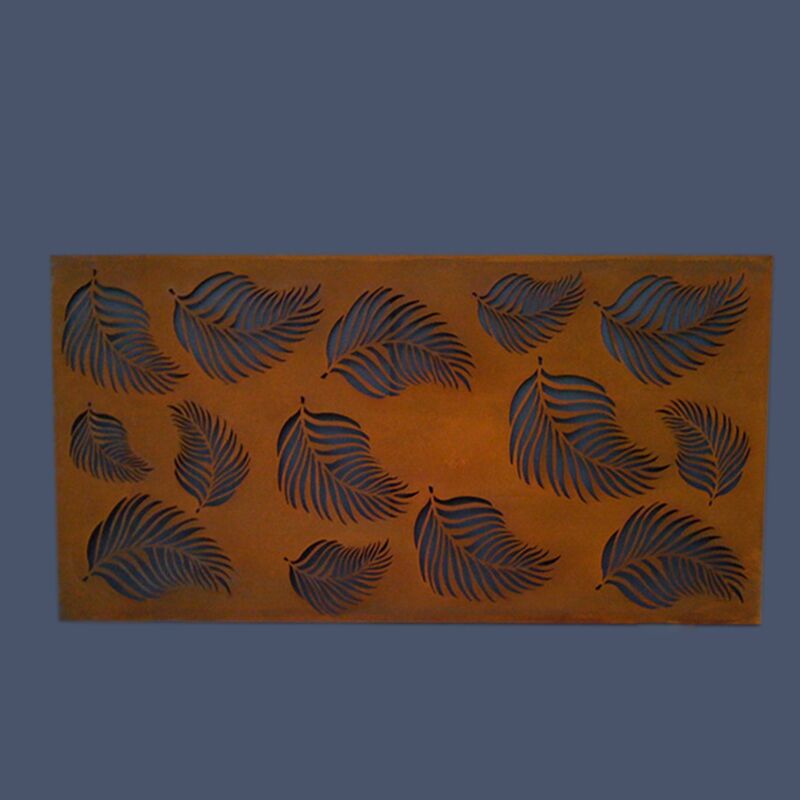 Leaves modern art panel sculpture wall screen corten steel for garden decor – is a panel sculpture. It could be placed outdoor to decor a fence, or wall, to make space stylish and to bring the feeling of well-designed interior, harmony place. Being placed in any space, it will bring organic appearance. This natural rust color of the sculpture and plant printing makes feeling of nature, safe and piece. This sculpture would be an amazing artwork to being added to complement your garden or home.