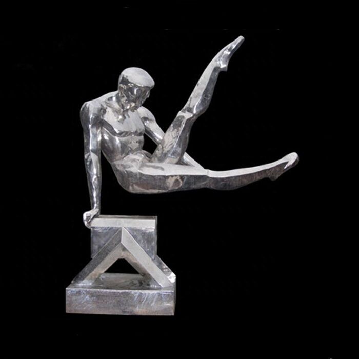 This is Life Size Stainless Steel Sports Gymnast Sculpture. The gymnast is doing his performance. It is truly a stunning piece of sports sculpture and will create a striking focal point.