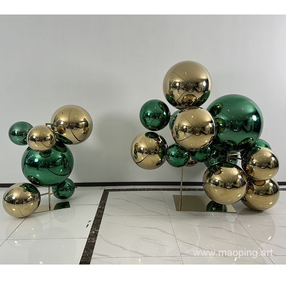 Outdoor square apartment art deco stainless steel sphere sculpture
