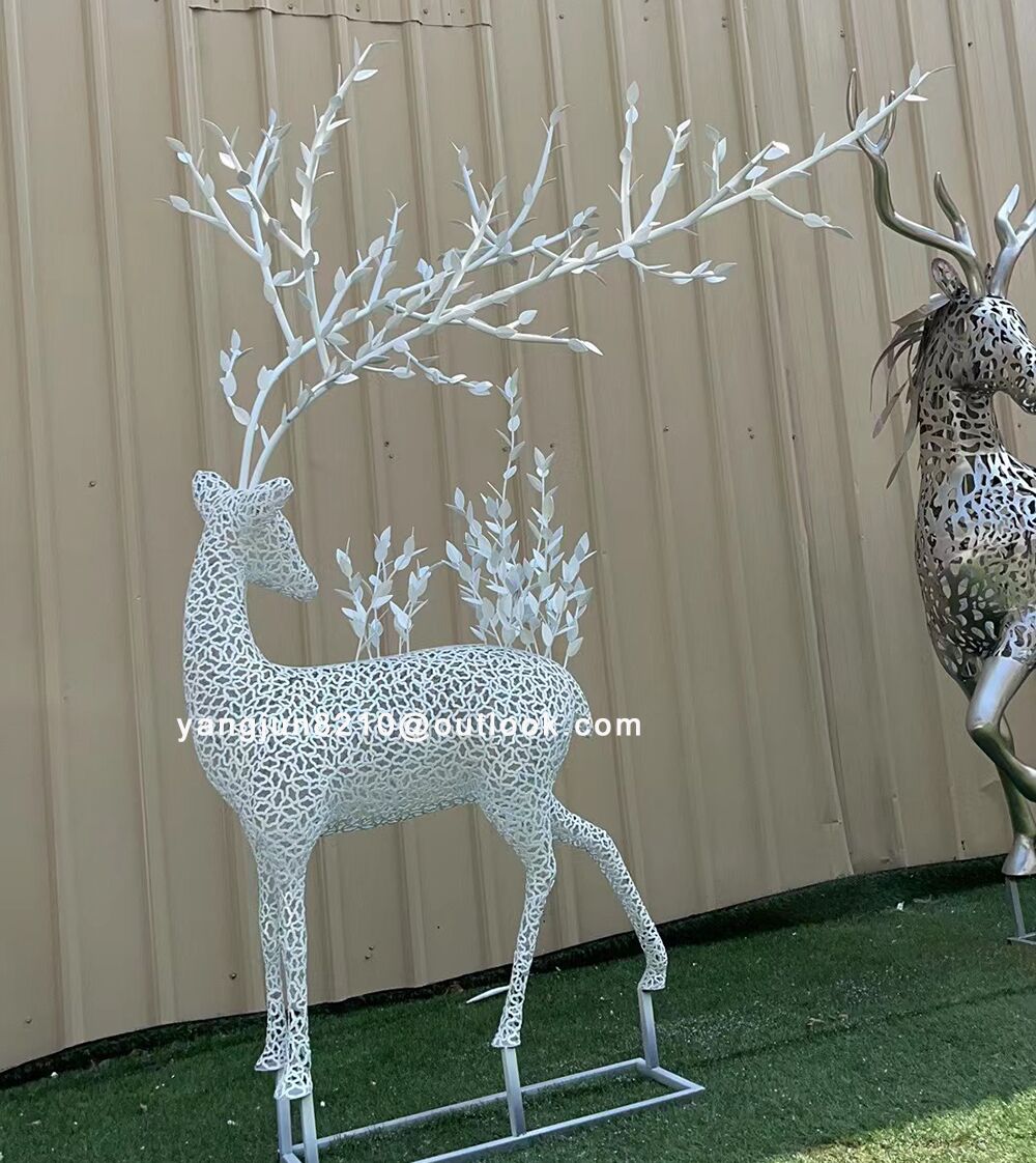 White Outdoor park square garden courtyard art stainless steel deer sculpture